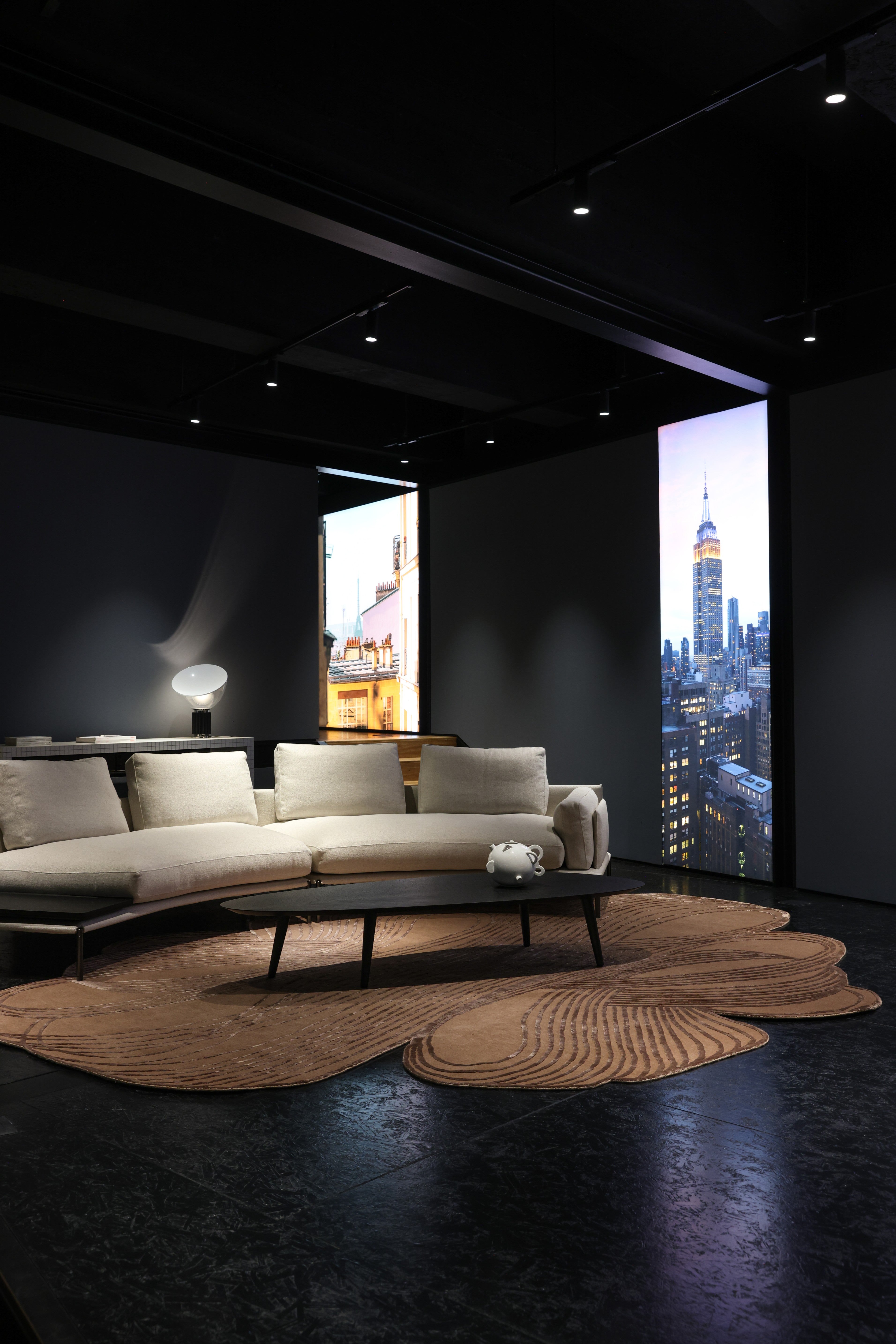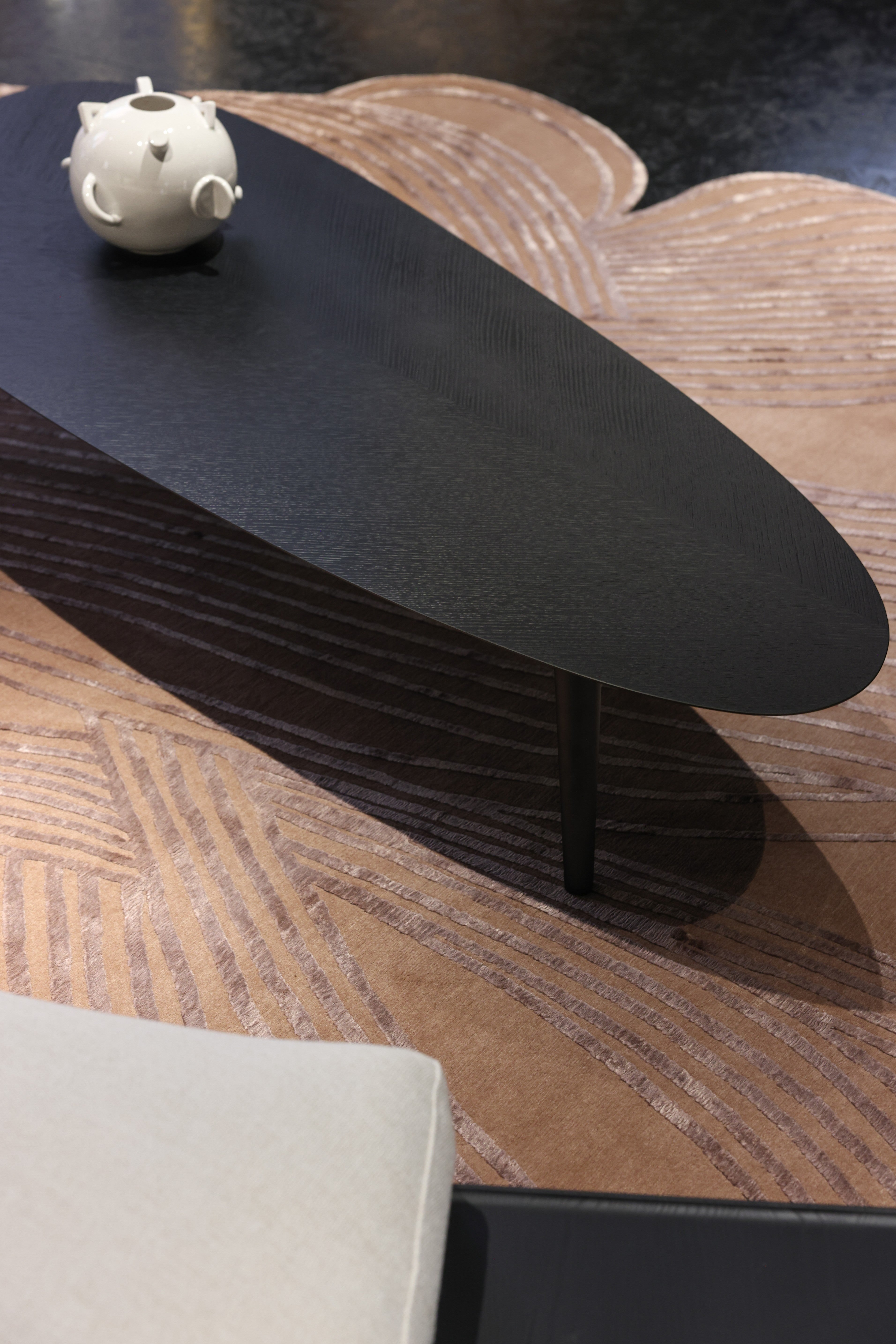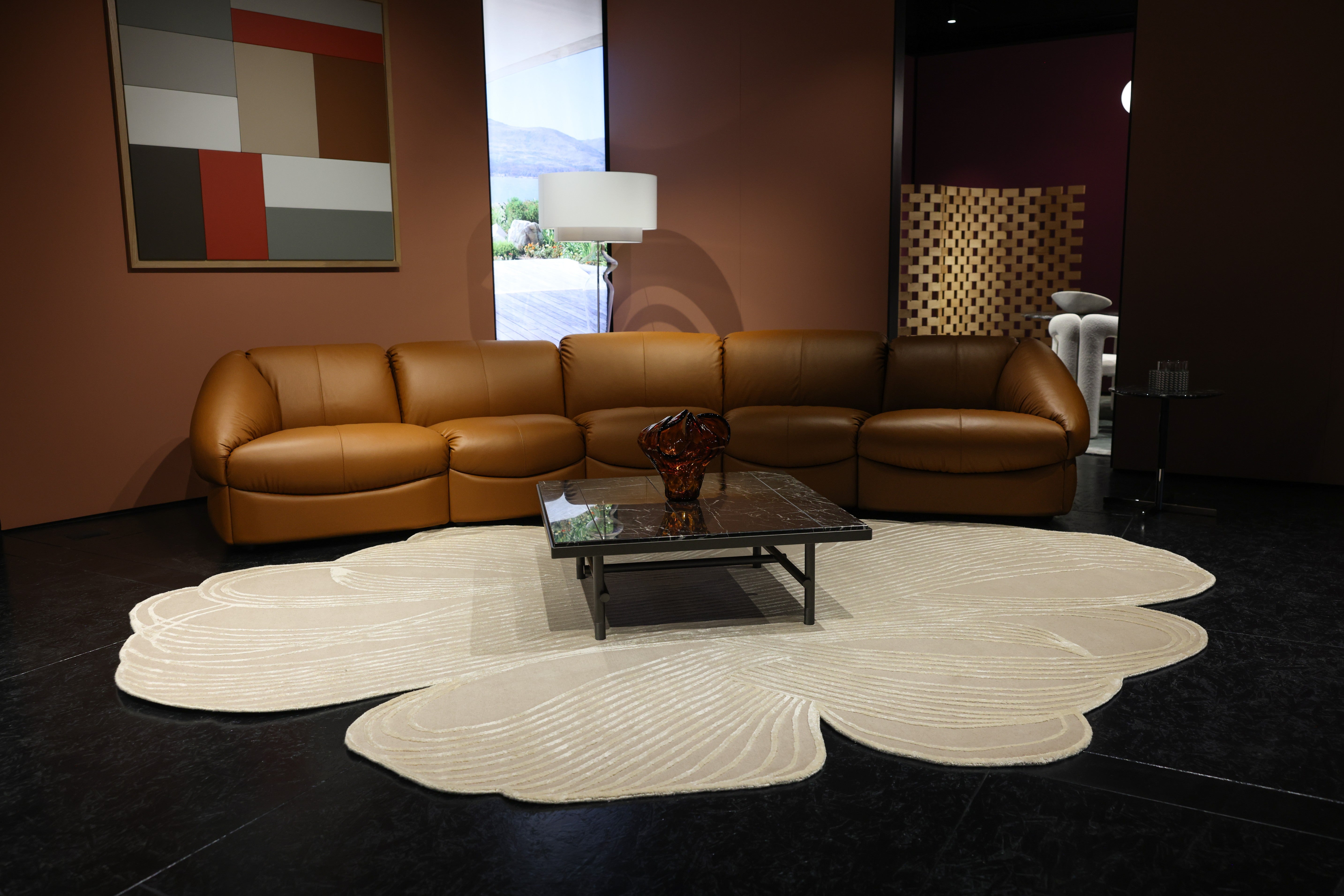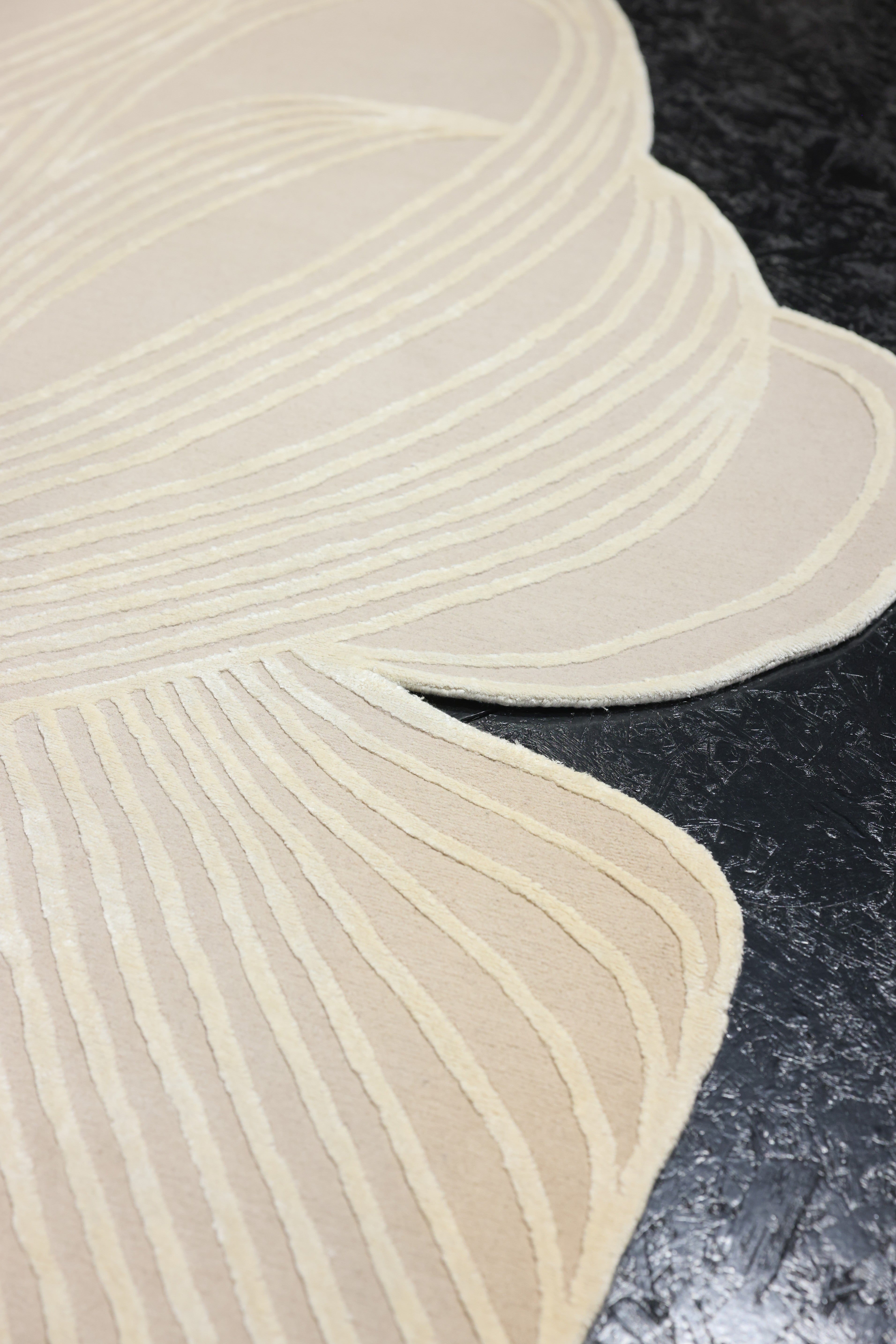 Sandra Mansour’s carpet is a meditation on movement and stillness. Inspired by the flowing lines of a dress, she translates the softness and femininity of fabric into the permanence of a handwoven piece. Geometry meets fluidity, creating a design that feels both structured and dreamlike—an echo of nature filtered through memory and emotion. For Sandra, this collaboration celebrates artisanship made slowly, knot by knot, and offers a gentle tribute to Beirut, her city of resilience and contrasts.
